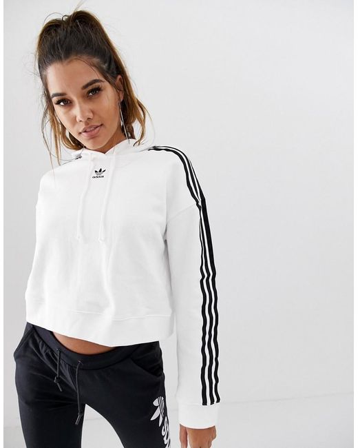 Adicolor - Felpa corta bianca con cappuccio da donna di colore bianco