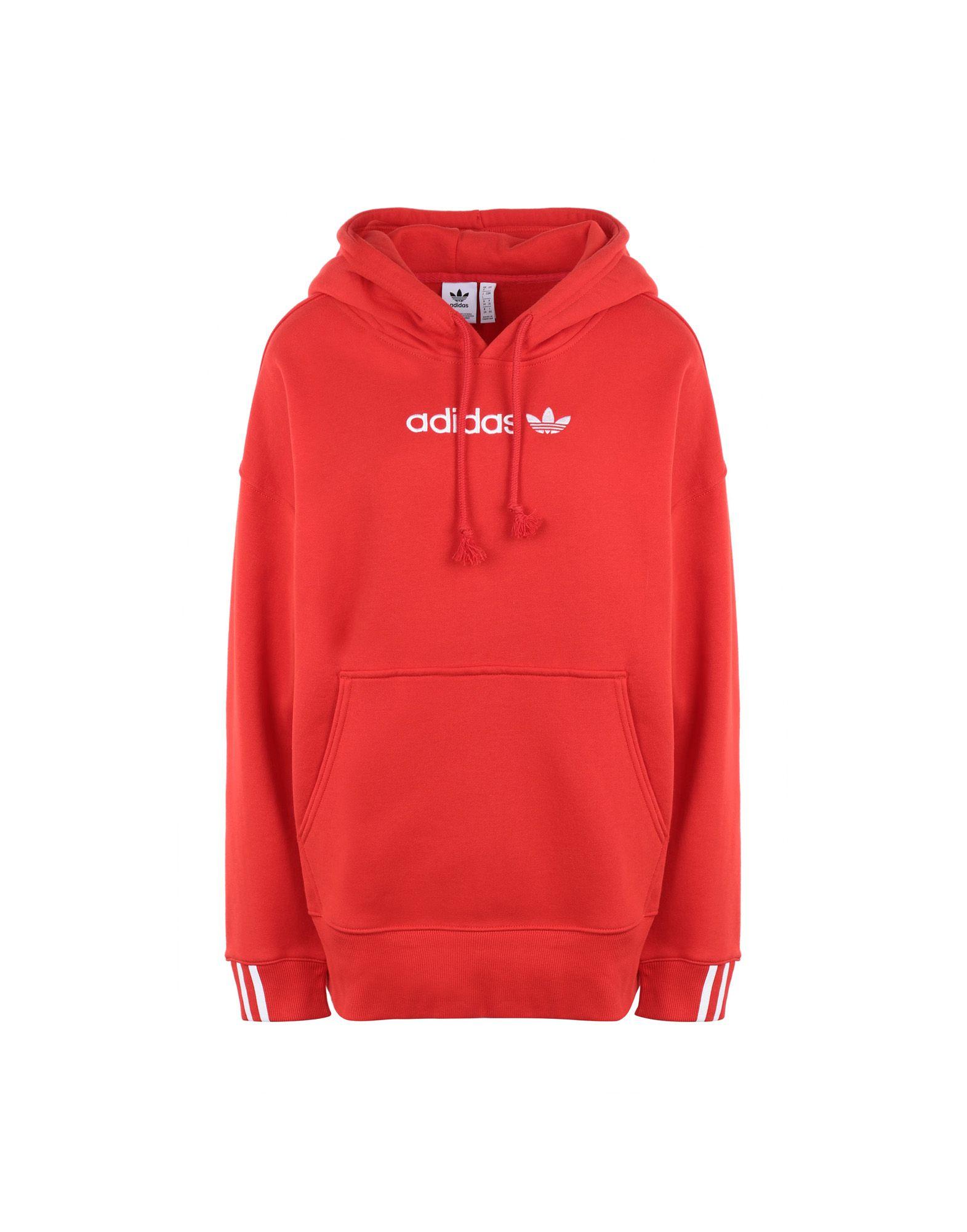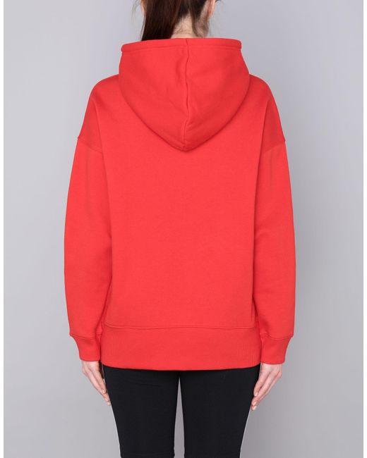 Ricamo, logo, tinta unita basic, collo con cappuccio, maniche lunghe, una tasca, interno in felpa invernale, lifestyle. 77% Cotone organico, 23% Poliestere riciclato. Colore: rosso