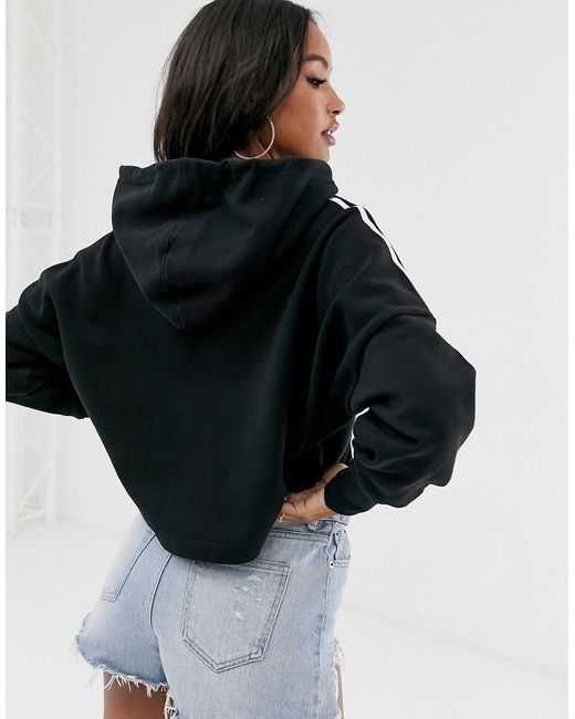 Felpa corta nera con cappuccio da donna di colore nero