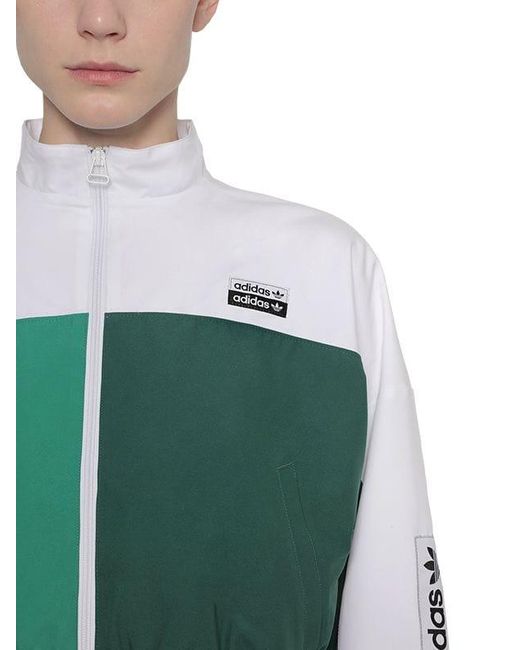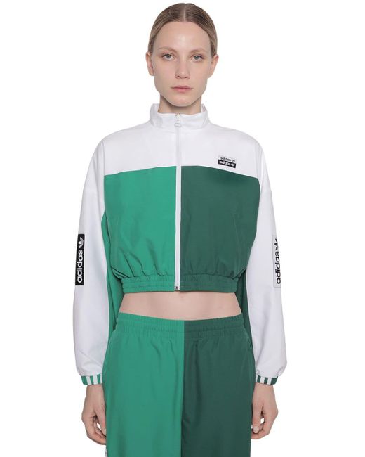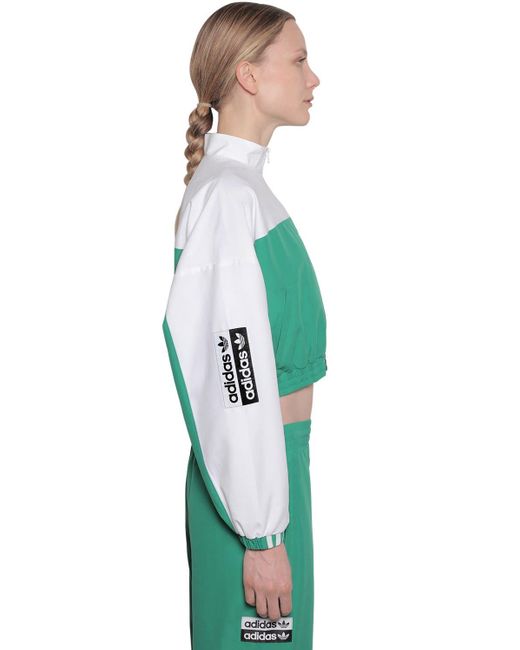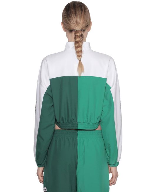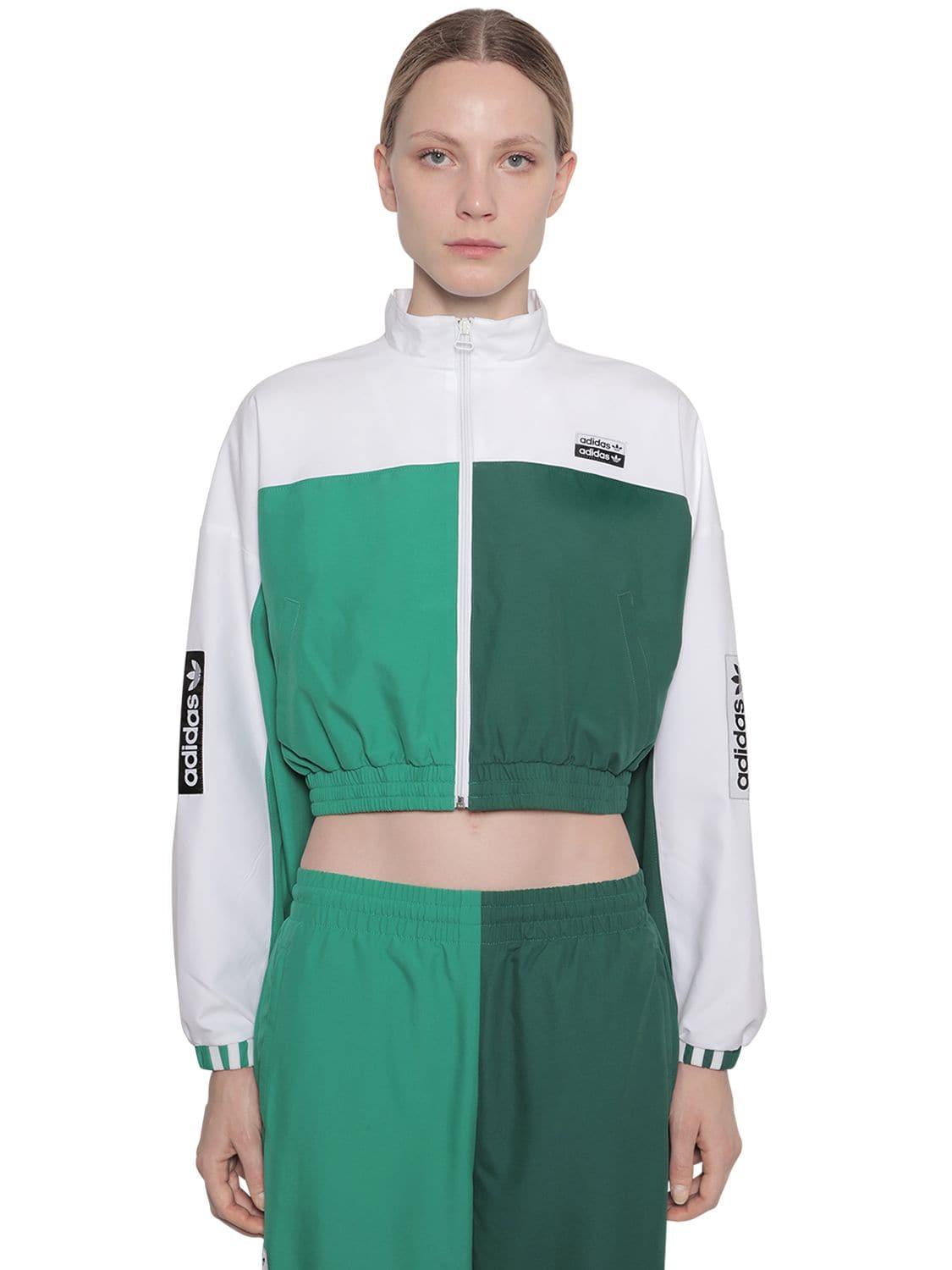 Collo alto. Chiusura frontale con zip. Polsi a righe. Patch logo frontale. Dettagli logo sulla manica. Costruzione a blocchi di colore. Vita elasticizzata. Cropped. 100%pl. Colore: verde