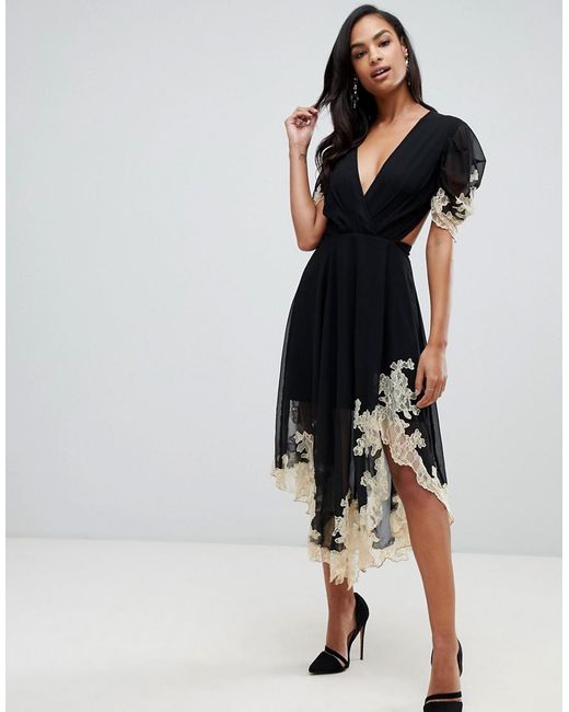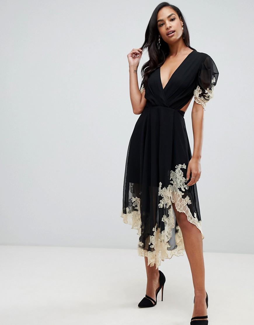 Vestito di ASOS DESIGN, Per te che ami l'eleganza, Scollo a V, Orli in pizzo, Cut-out con fascette sul retro, Chiusura con zip, Taglio longuette, Vestibilità classica, Un taglio tipico, nessuna sorpresa. Grazie al suo design team londinese, ASOS DESIGN interpreta con carattere le tendenze del momento, per donarti la sicurezza di cui hai bisogno per esprimere la tua individualità. Abbiamo tutti i jeans, i vestiti, le giacche e gli accessori che ti servono, disponibili anche nelle taglie Curve, Tall, Petite e Maternity. Dai anche uno sguardo alla linea make-up ASOS DESIGN. Inventa uno stile tutto tuo oggi, e ricomincia da capo domani. Perché ogni giorno e sera siano straordinari, proprio come te. La tua vita è eclettica e anticonvenzionale e, da oggi, lo sarà anche il tuo guardaroba. Chiffon/ jeans/ poliestere/ viscosa. Colore: nero