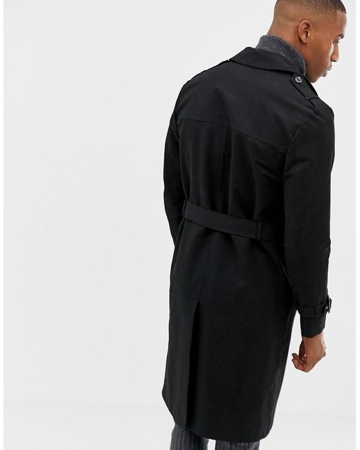 Trench lungo impermeabile con cintura nero da uomo