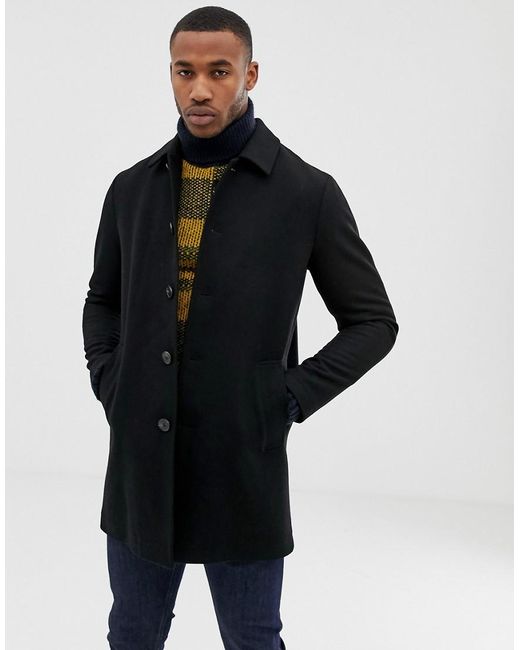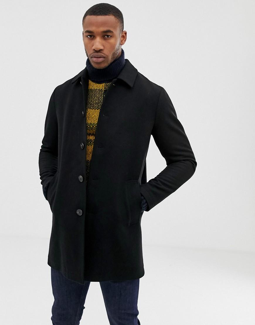 Trench nero in misto lana da uomo