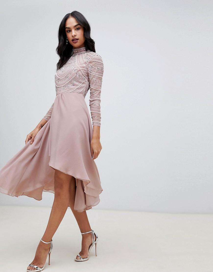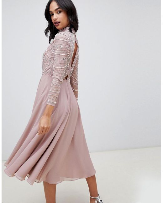 Vestito midi a maniche lunghe con corpino decorato da donna di colore rosa