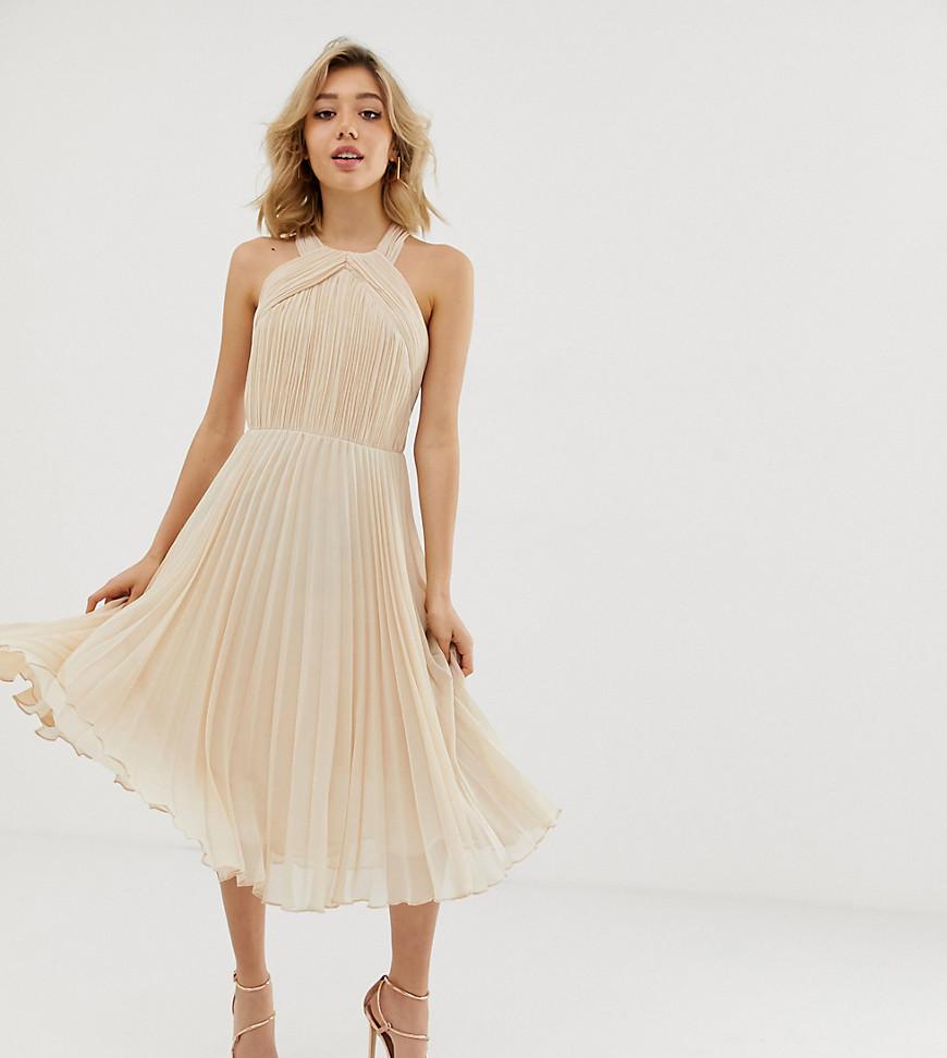 Vestito Petite di ASOS DESIGN, Design a pieghe, Perfetto per fare la ruota, Allacciatura al collo, Incrocio sul retro, Chiusura con zip, Taglio longuette, Vestibilità classica, Un taglio classico per un capo classico. Grazie al suo design team londinese, ASOS DESIGN interpreta con carattere le tendenze del momento, per donarti la sicurezza di cui hai bisogno per esprimere la tua individualità. Abbiamo tutti i jeans, i vestiti, le giacche e gli accessori che ti servono, disponibili anche nelle taglie Curve, Tall, Petite e Maternity. Dai anche uno sguardo alla linea make-up ASOS DESIGN. Inventa uno stile tutto tuo oggi, e ricomincia da capo domani. Perché ogni giorno e sera siano straordinari, proprio come te. La tua vita è eclettica e anticonvenzionale e, da oggi, lo sarà anche il tuo guardaroba. Jeans/ poliestere. Colore: rosa