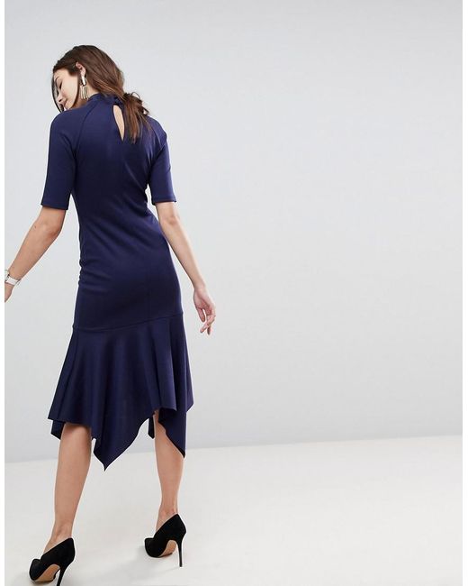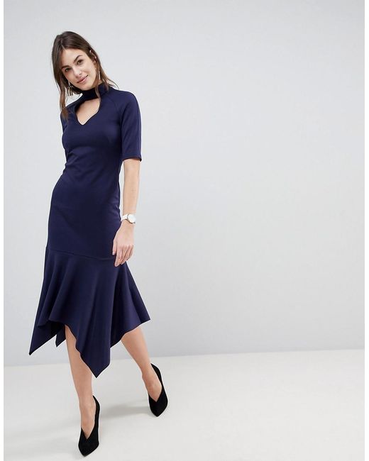 Vestito longuette di ASOS Collection, Collarino, Parte frontale con cut-out, Maniche corte, Fondo a peplo, Vestibilità slim, Taglio aderente. Ottieni una vittoria sul tuo guardaroba, non importa con quale codice di abbigliamento, grazie alla nostra collezione ASOS Collection. Dai raffinati vestiti da cerimonia a quelli per gli after party, il nostro team di designer londinesi esplora il globo con vestiti imperdibili, abbigliamento da lavoro, scarpe e capi in jeans dalle forme e vestibilità più trendy. Elastan/ jeans/ oro/ poliestere. Colore: blu