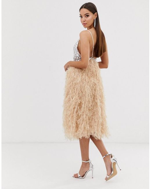 Vestito midi di ASOS DESIGN, Se devi vestirti elegante, fallo con questo, Scollo profondo, Spalline regolabili, Decorazione con cristalli sintetici, Gonna con piume, Vestibilità classica, Scegli la tua taglia normale. Questo è ASOS DESIGN : il tuo punto di riferimento per tutte le ultime tendenze, non importa chi sei, da dove vieni o cosa fai. In esclusiva per ASOS, il nostro brand universale è dedicato a te ed è disponibile in tutte le taglie: ASOS Curve, Tall, Petite e Maternity. Creato da noi, insieme a te. Poliestere. Colore: rosa