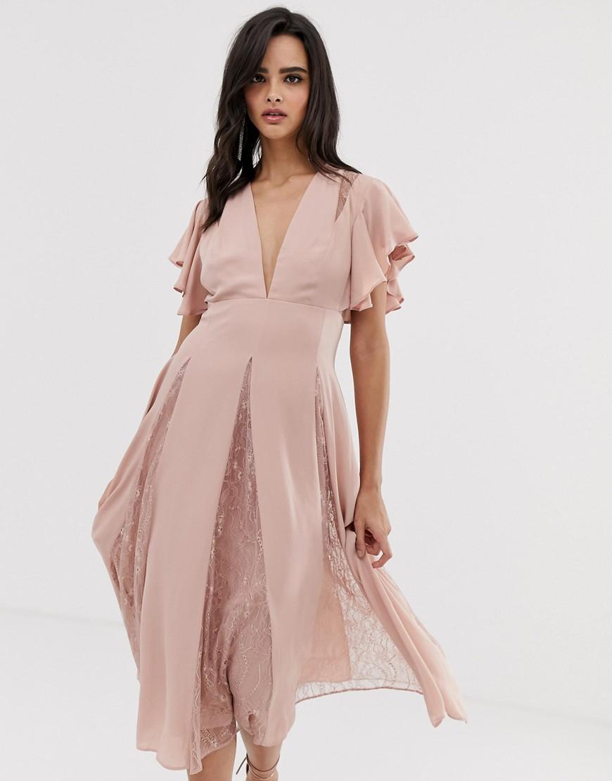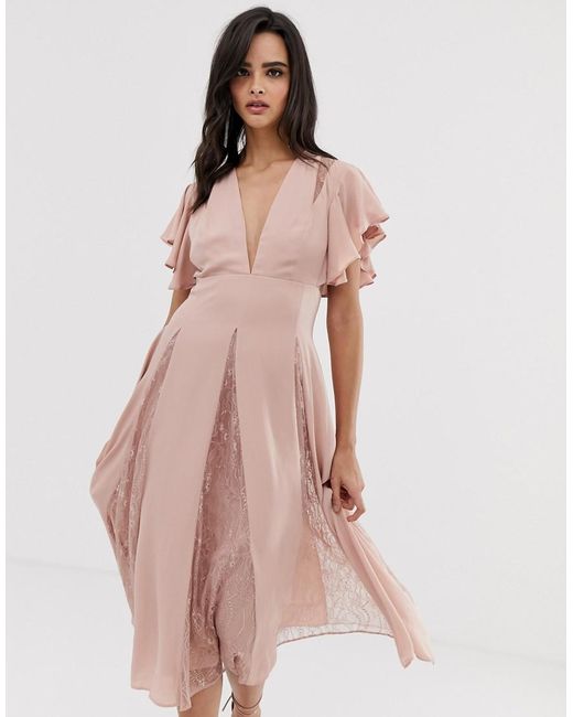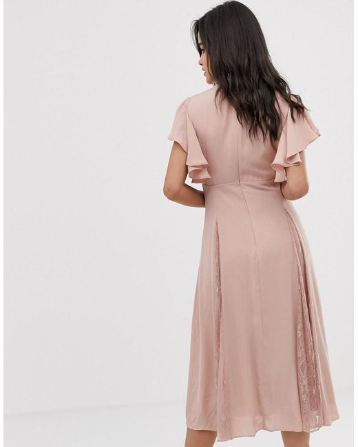 Vestito midi di ASOS DESIGN, Perfetto per i party più divertenti, Modello leggero, Scollo profondo, Maniche con volant, Pannelli in pizzo, Zip sul retro con gancetti, Vestibilità classica, Veste perfettamente la taglia indicata. Questo è ASOS DESIGN : il tuo punto di riferimento per tutte le ultime tendenze, non importa chi sei, da dove vieni o cosa fai. In esclusiva per ASOS, il nostro brand universale è dedicato a te ed è disponibile in tutte le taglie: ASOS Curve, Tall, Petite e Maternity. Creato da noi, insieme a te. Poliestere. Colore: rosa