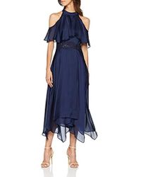 Vestito midi con pinces e scollo alla Bardot da donna di colore blu
