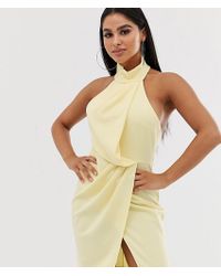 Vestito di ASOS DESIGN, Scollo a V, Volant, Cut-out ai lati e sulla schiena, A volte è vero che meno è di più, Gonna a portafoglio, Vestibilità slim, Taglio aderente. Grazie al suo design team londinese, ASOS DESIGN interpreta con carattere le tendenze del momento, per donarti la sicurezza di cui hai bisogno per esprimere la tua individualità. Abbiamo tutti i jeans, i vestiti, le giacche e gli accessori che ti servono, disponibili anche nelle taglie Curve, Tall, Petite e Maternity. Dai anche uno sguardo alla linea make-up ASOS DESIGN. Inventa uno stile tutto tuo oggi, e ricomincia da capo domani. Perché ogni giorno e sera siano straordinari, proprio come te. La tua vita è eclettica e anticonvenzionale e, da oggi, lo sarà anche il tuo guardaroba. Jeans/ raso/ seta. Colore: giallo