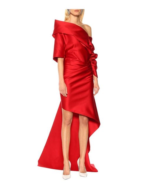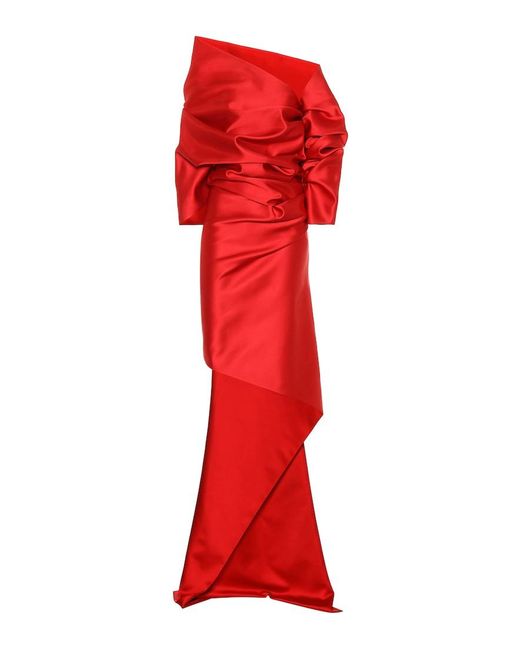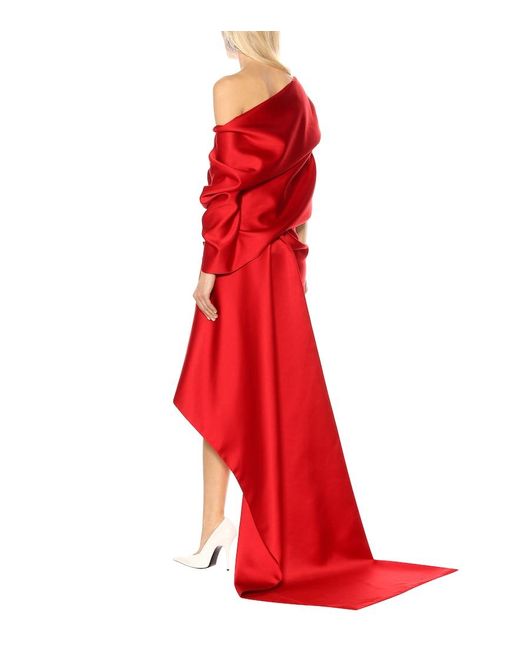 Abito asimmetrico in raso da donna di colore rosso