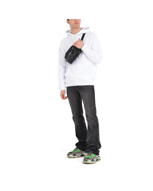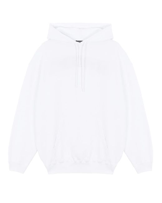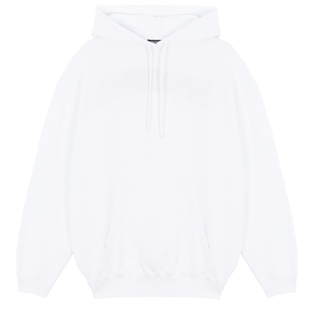 Felpa con cappuccio bianca di Balenciaga in cotone con stampa logo grafica sulla schiena. Sfilata Primavera/Estate 2019. Colore: bianco