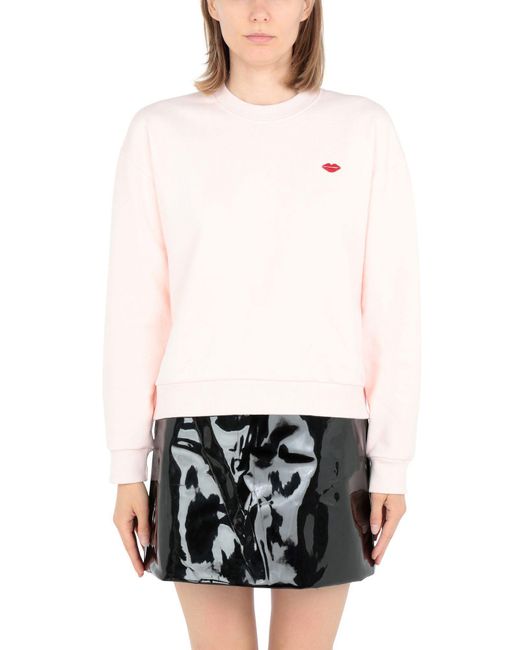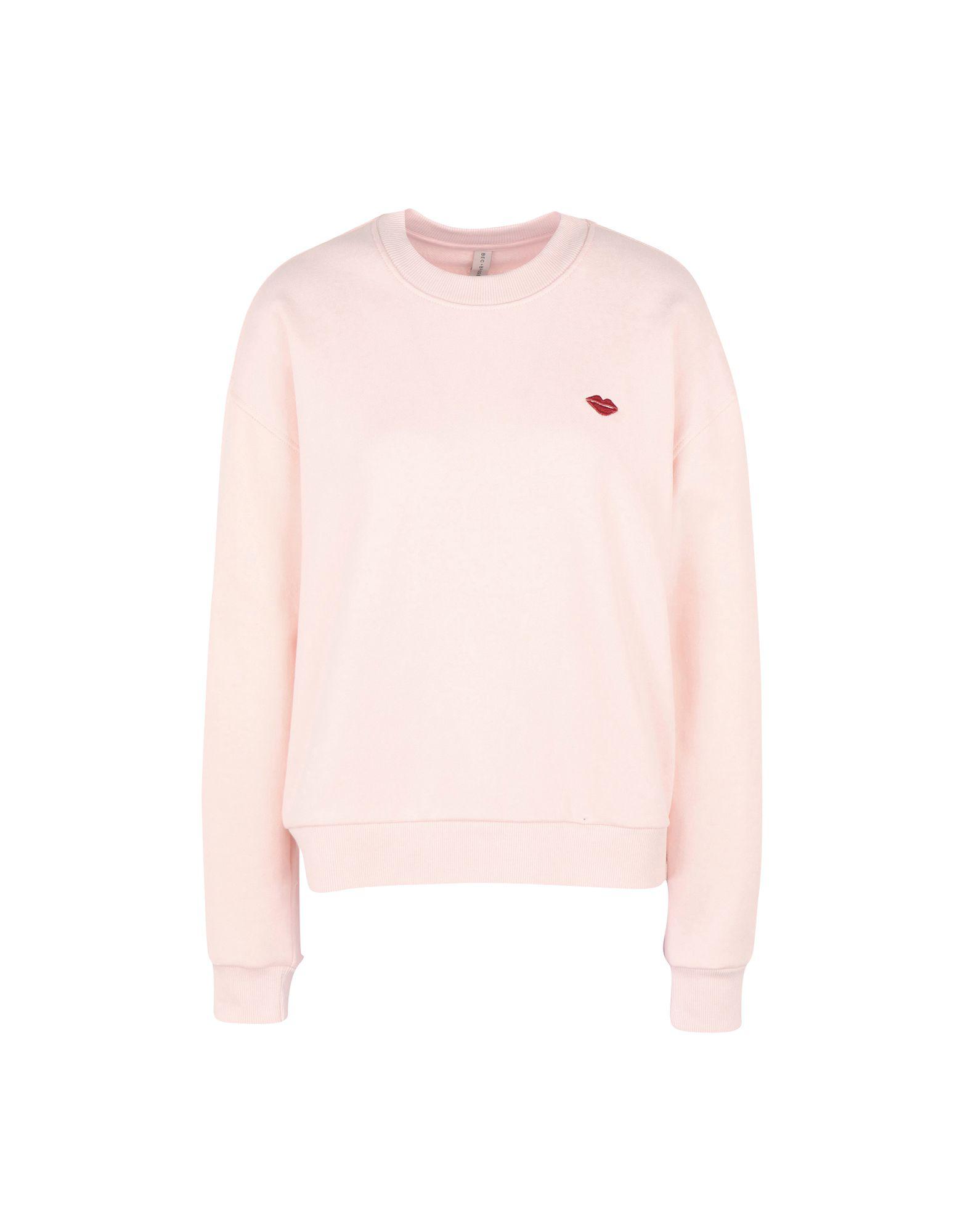 Ricamo, tinta unita, collo tondo, maniche lunghe, senza tasche, interno in felpa estiva. 100% Cotone. Colore: rosa