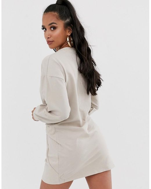 Vestitino felpa con incrocio sul davanti grigio pietra da donna
