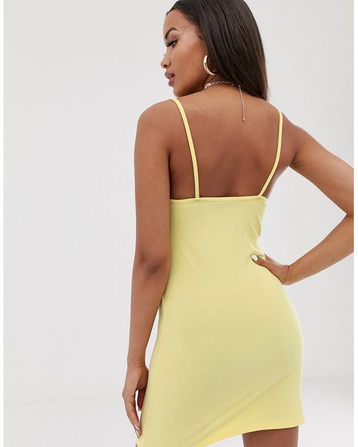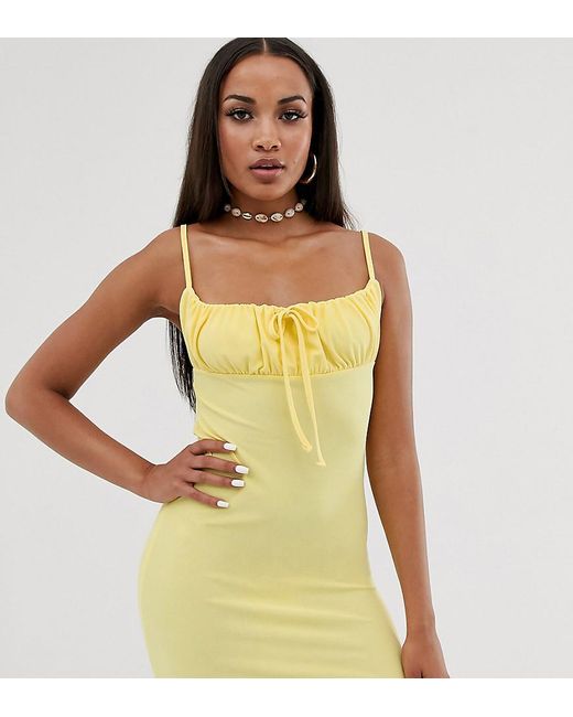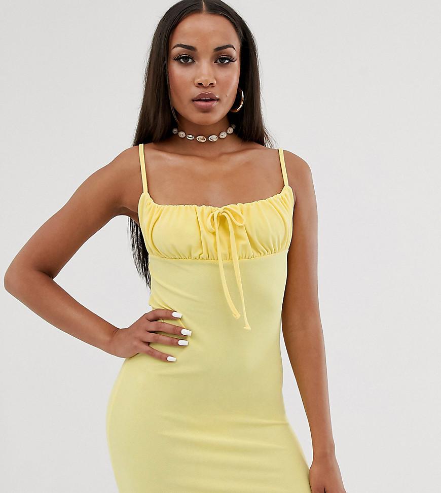 Vestito a fascia con spalline sottili arricciato giallo limone da donna