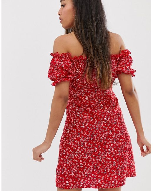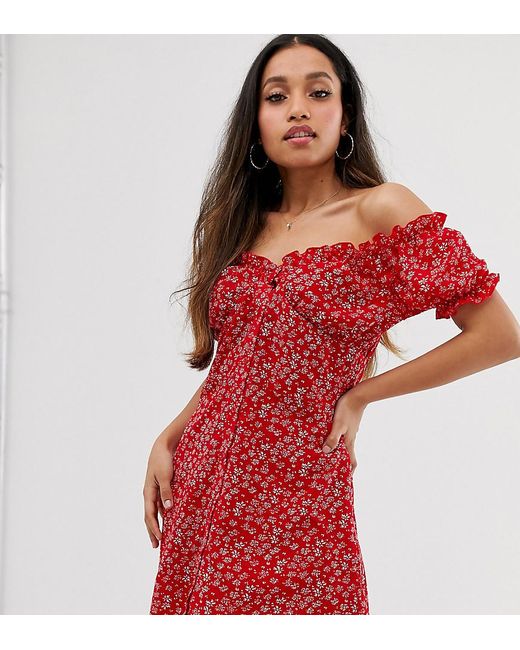 Vestito Petite di boohoo Petite, Abbigliamento da giorno in versione easy, Stampa floreale, Scollo Bardot, Bordi arricciati, Bottoni sul davanti, In esclusiva per ASOS. Traducendo i suoi viaggi internazionali in modelli nuovi e originali dal carattere divertente e informale, boohoo Petite offre tutto ciò che ti serve per rendere perfetti i tuoi momenti di festa. Graziosi top corti e vestiti aderenti si combinano a una gamma di capi basic essenziali per tutti i giorni con proporzioni perfettamente ridimensionate. Poliestere/ stampa. Colore: rosso