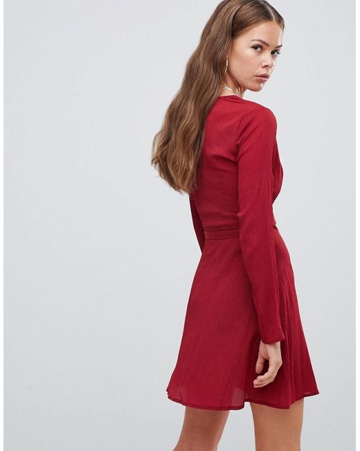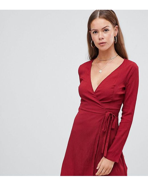 Vestito a portafoglio allacciato in vita da donna di colore rosso