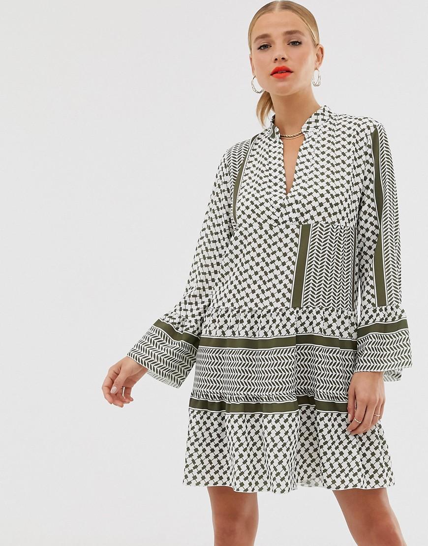Vestito di boohoo, Un capo che fa venire voglia di uscire, Scollo a V, Maniche scampanate, Modello stampato, Stile grembiule, Vestibilità classica, Scegli la tua taglia normale. Traducendo i suoi viaggi internazionali in modelli nuovi e originali dal carattere divertente e informale, boohoo offre tutto ciò che ti serve per rendere perfetti i tuoi momenti di festa. I capi in denim con strappi e i vestiti aderenti a fascia si combinano a una serie di must-have composta da modelli basic da tutti i giorni con cui potrai dare una rinfrescata al tuo guardaroba, a prescindere dall'occasione. Denim/ elastan/ poliestere/ stampa. Colore: multicolore