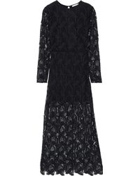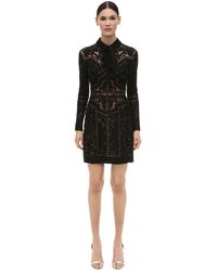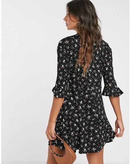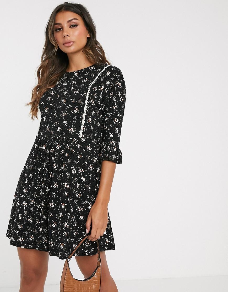 Vestito grembiule nero a fiorellini con bordi bianchi da donna