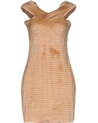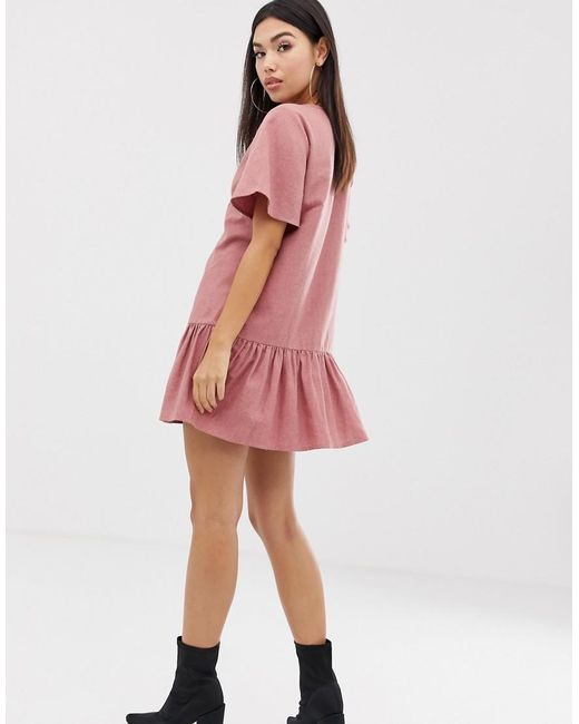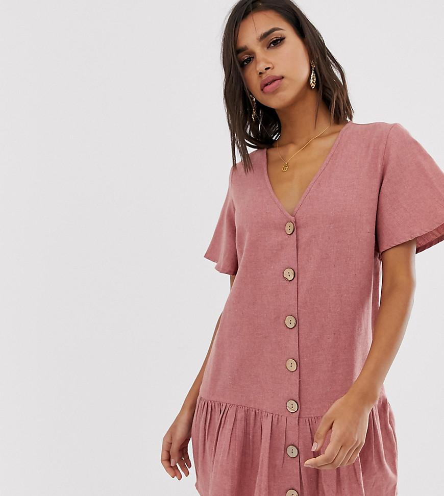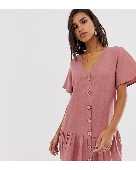 Vestito grembiule rosa con vita scesa e bottoni da donna di colore marrone