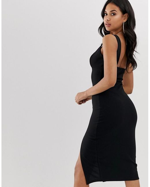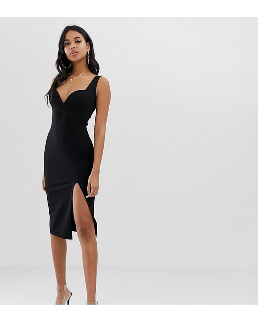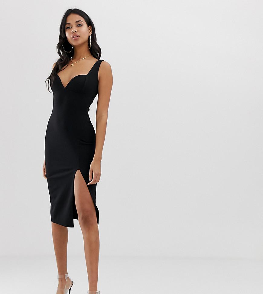 Vestito midi nero con profondo scollo a cuore e spacco laterale da donna
