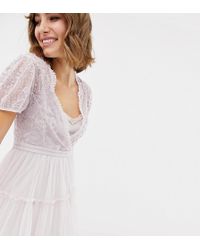 Vestito skater con maniche a sbuffo lilla da donna di colore viola