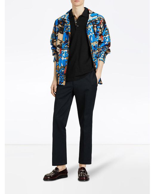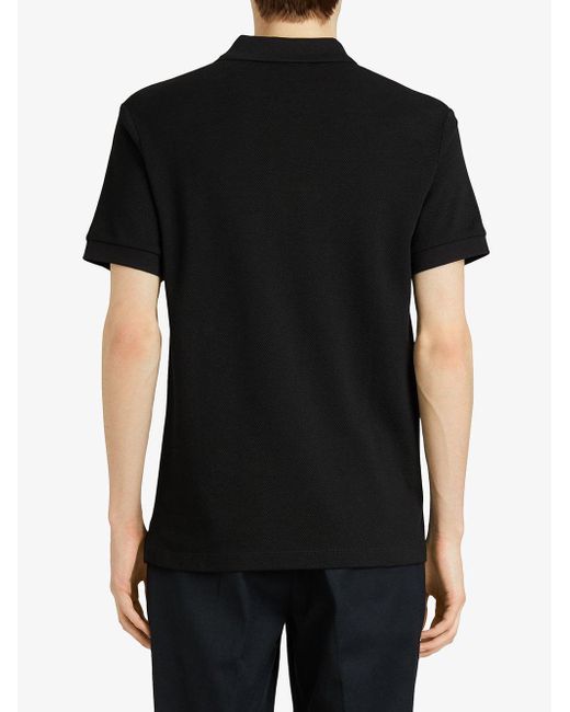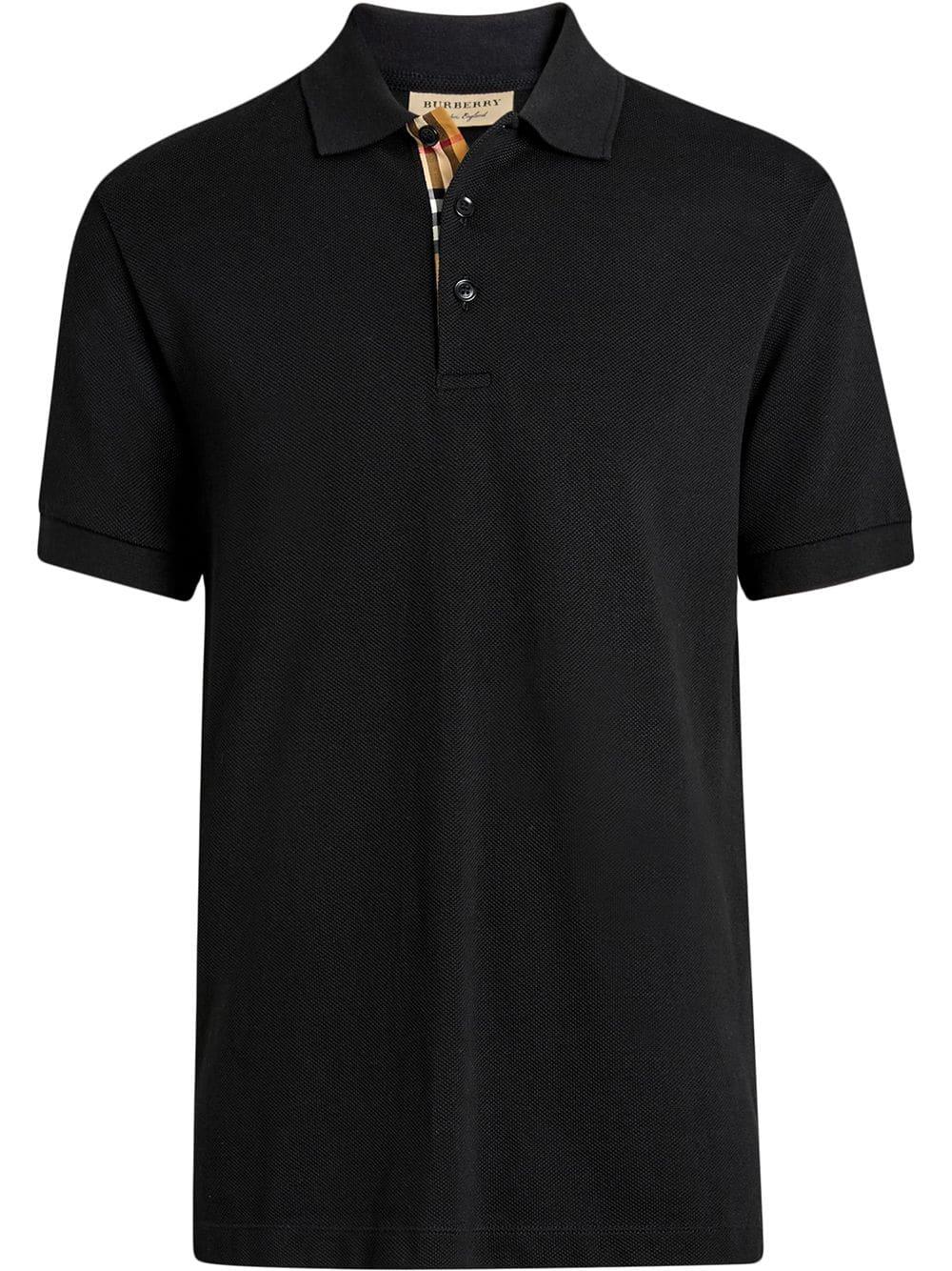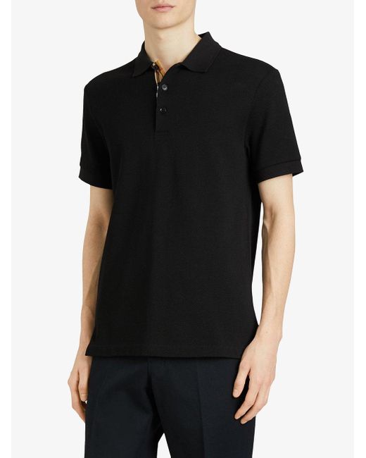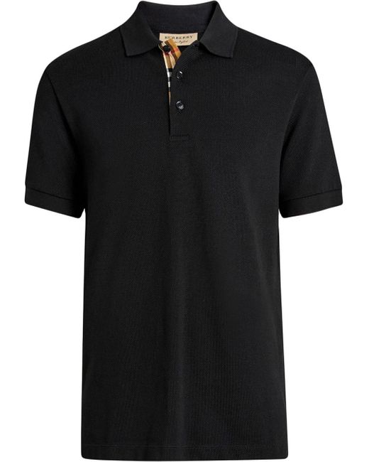 Polo con collo a contrasto di colore nero in cotone di Burberry con colletto classico, chiusura frontale con bottoni e fodera con motivo House Check e maniche corte. Colore: nero