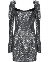 Camicia da notte da casa a maniche lunghe con monogramma nera da donna di colore grigio