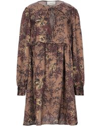 Vestito con stampa leopardata color marrone di Calvin Klein. Modello con maniche corte ampie, vita con cuciture, abbottonatura coperta e tasche laterali. Colore: marrone