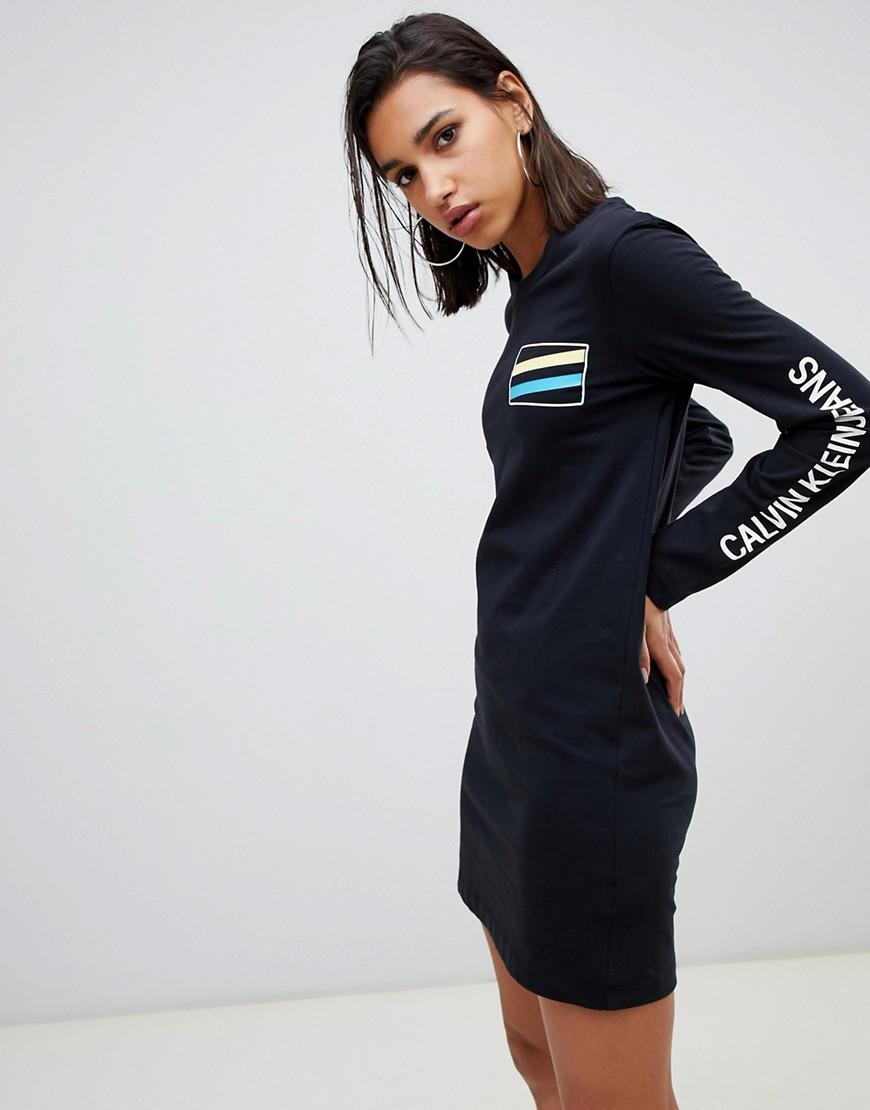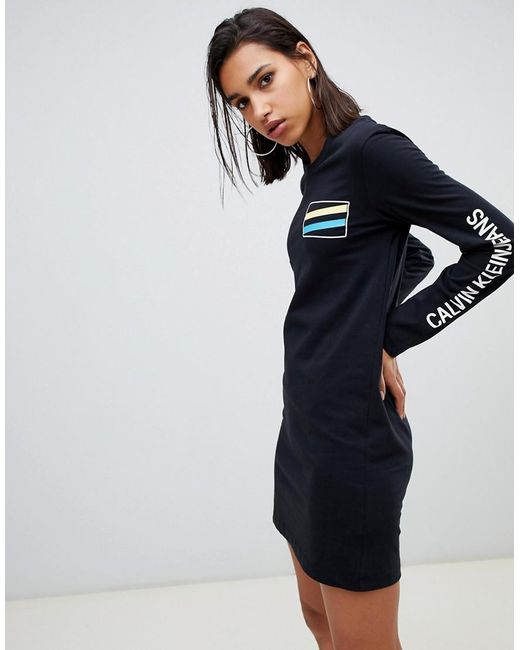 Vestito di Calvin Klein, Ti piace quello che vedi, vero? Modello girocollo, Maniche lunghe, Logo Calvin Klein, Vestibilità classica, Non troppo largo, non troppo stretto. Simbolo dello stile chic minimalista, Calvin Klein trasmette il proprio amore per le linee pulite a tutti gli accessori e le collezioni di intimo del marchio. I portafogli e le borse minimal chic e funzionali sono accostati a reggiseni in cotone senza cuciture, costumi sportivi e abbigliamento di lusso per il tempo libero. Dai un'occhiata allo stile fresco di Calvin Klein e alle stampe con il monogramma CK. Cotone/ jeans/ jersey. Colore: nero