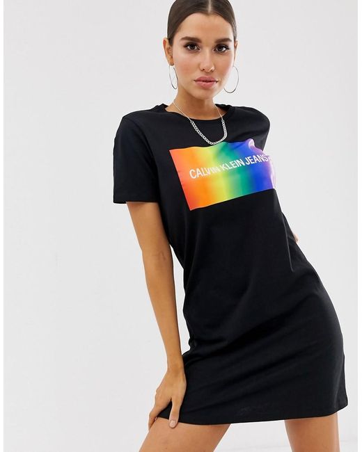 Vestito T-shirt con logo arcobaleno da donna di colore nero
