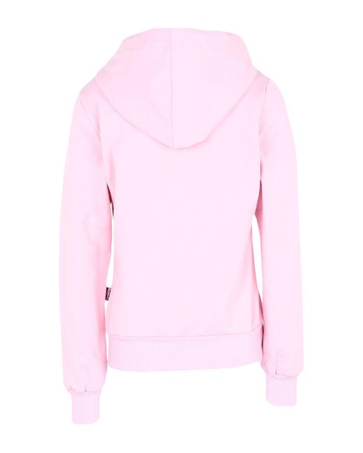 Stampa, logo, tinta unita, collo con cappuccio, maniche lunghe, una tasca, interno in felpa invernale, elasticizzato, vestibilità ridotta. 95% Cotone, 5% Elastan. Colore: rosa