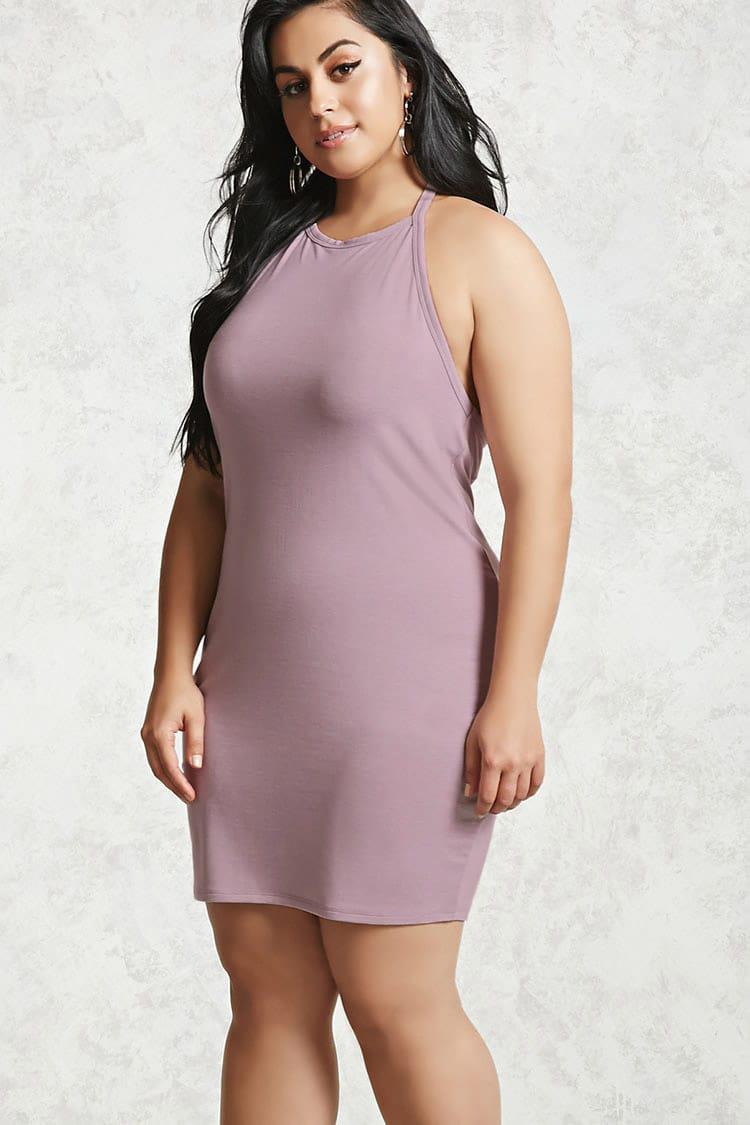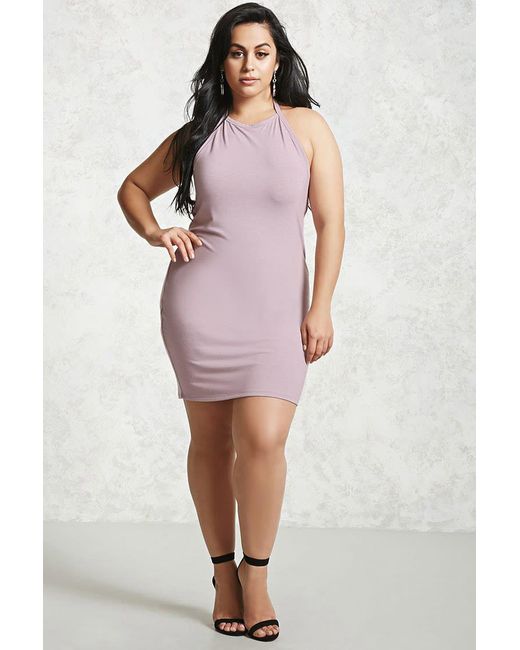 Vestito allacciato al collo da donna di colore viola