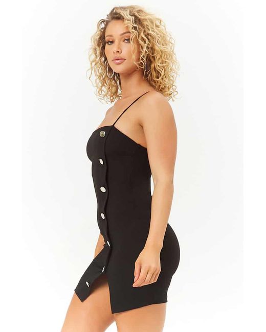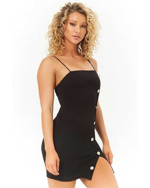 Dettagli Vestito corto con collo squadrato, spalline sottili, finti bottoni, pinces sul busto e spacco sul davanti. I resi si effettuano solo online. Colore: nero