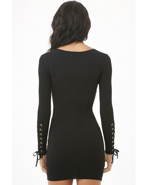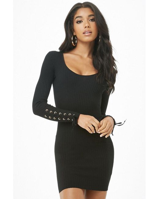 Dettagli Vestito corto a costine con scollo a U e maniche lunghe con lacci. Colore: nero
