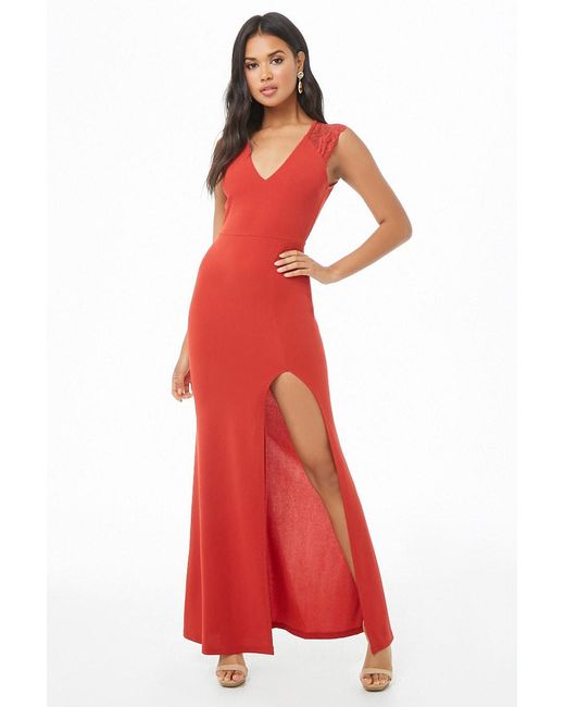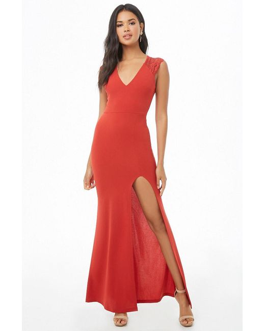Dettagli Vestito lungo con scollo a V, inserti in pizzo sulle spalle, spacco sul davanti, pinces sul busto, cut-out sul retro e cerniera a vista sul retro. I resi si effettuano solo online. Colore: rosso