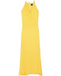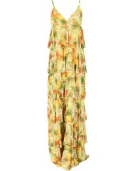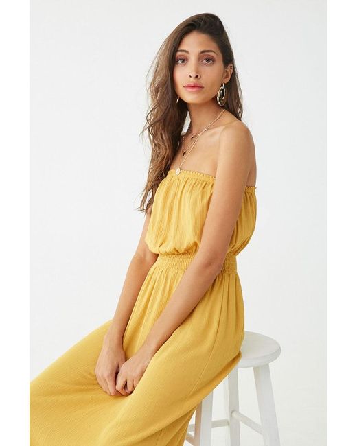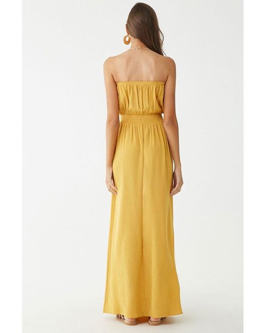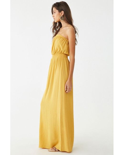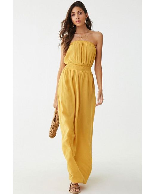 Dettagli Special Price. Vestito lungo plissettato con scollo dritto elasticizzato con bordo con volant, senza spalline, con corpino blusante e vita arricciata. Colore: giallo