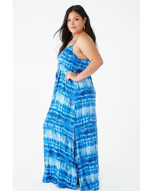 Dettagli Vestito lungo plissettato con fantasia tie-dye colorata, scollo a V avanti e dietro, spalline sottili regolabili, fodera, lacci in vita, spacco laterale e silhouette ampia. Colore: blu