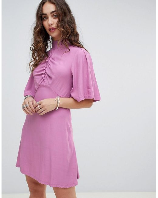 Vestitino di Free People, Certi giorni ci vuole qualcosa in più, Collo alto, Modello arricciato sul davanti, Maniche con volant, Abbottonatura sul retro, Un capo carino da tutti i punti di vista, Modello aderente e svasato, Vestibilità classica. Con radici legate agli anni '70, la ragazza Free People vive tra arte, moda, musica e voglia di viaggiare. Femminile nello spirito e "Bohémien" negli atteggiamenti. Dallo stile dolce al duro, da quello maschiaccio al romantico, Free People mischia colori e stampe per una collezione ispirata di vestiti lunghi fluttuanti, maglie in jersey morbidissimo e stivaletti di pelle. Jersey/ pelle/ viscosa. Colore: rosa