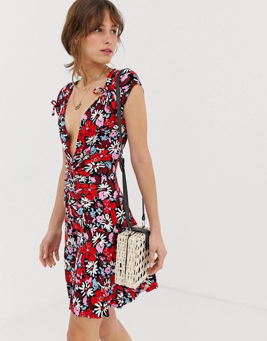 Vestito di Free People, Stampa floreale integrale, Dillo con i fiori, Scollo profondo, Maniche ad aletta con laccetti, Vestibilità classica, Un taglio tipico, nessuna sorpresa. Con radici legate agli anni '70, la ragazza Free People vive tra arte, moda, musica e voglia di viaggiare. Femminile nello spirito e "Bohémien" negli atteggiamenti. Dallo stile dolce al duro, da quello maschiaccio al romantico, Free People mischia colori e stampe per una collezione ispirata di vestiti lunghi fluttuanti, maglie in jersey morbidissimo e stivaletti di pelle. Elastan/ jersey/ pelle/ rayon/ stampa. Colore: nero