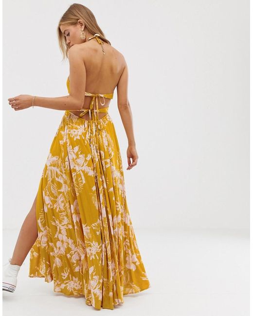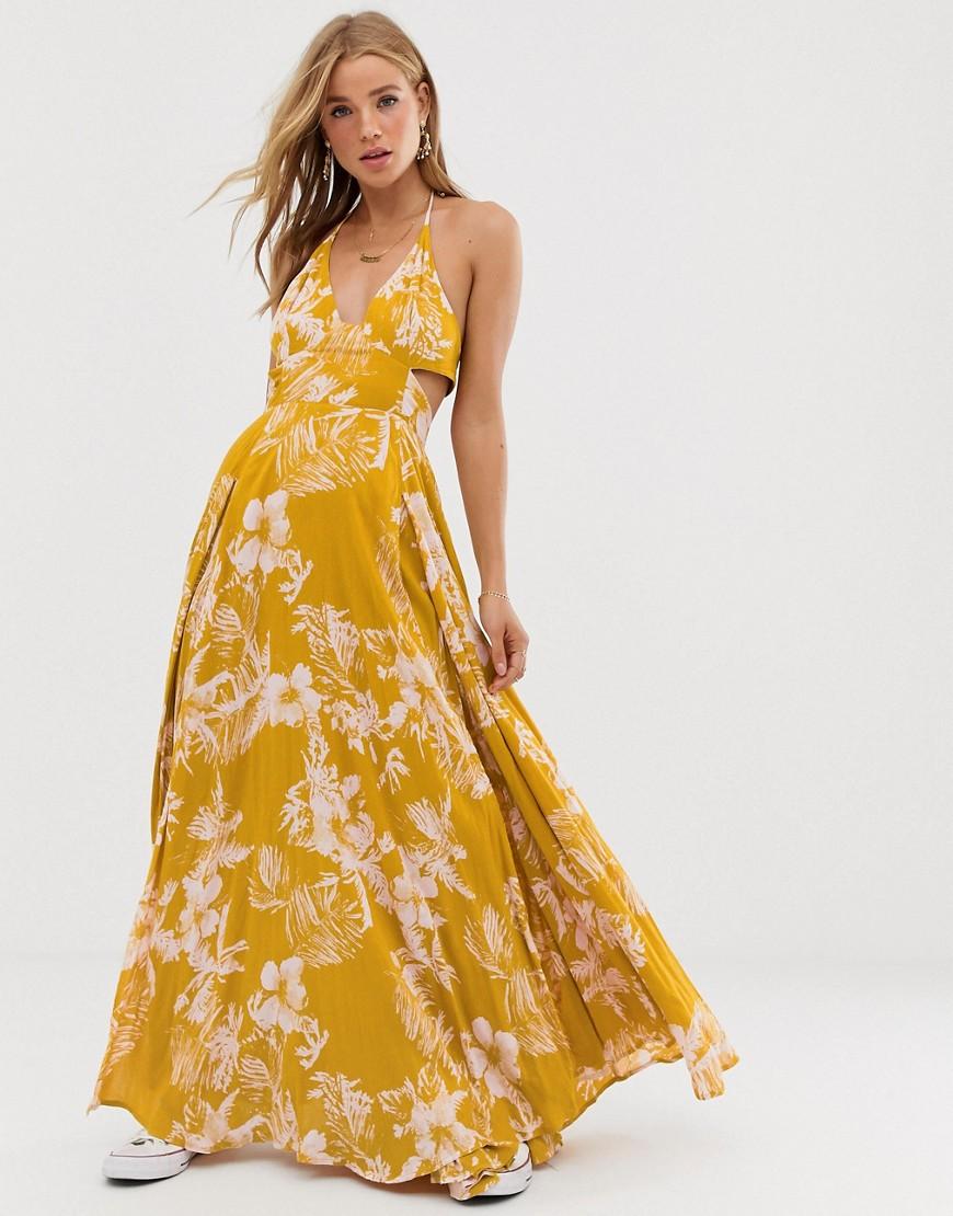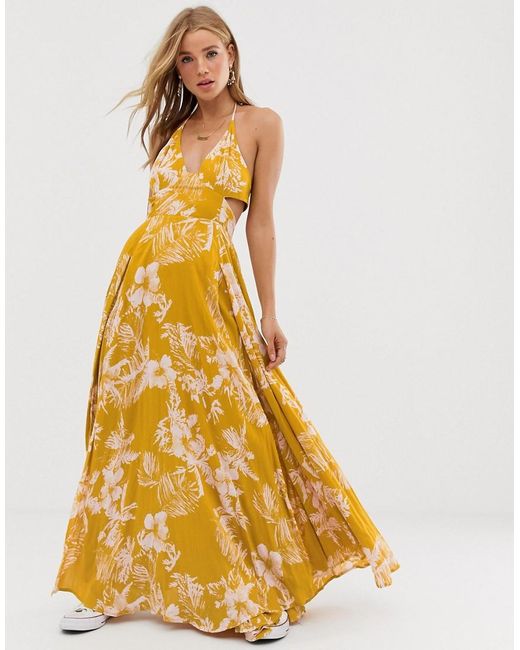 Vestito lungo di Free People, Abbigliamento da giorno in versione easy, Stampa floreale, Allacciatura al collo, Spacchi sul davanti, Schiena scoperta e laccetti, Vestibilità classica, Scegli la tua taglia normale. Con radici legate agli anni '70, la ragazza Free People vive tra arte, moda, musica e voglia di viaggiare. Femminile nello spirito e "Bohémien" negli atteggiamenti. Dallo stile dolce al duro, da quello maschiaccio al romantico, Free People mischia colori e stampe per una collezione ispirata di vestiti lunghi fluttuanti, maglie in jersey morbidissimo e stivaletti di pelle. Jersey/ pelle/ stampa/ viscosa. Colore: giallo