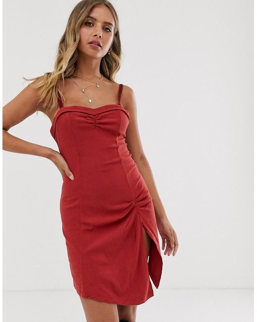 Monroe - Vestitino con spacco laterale da donna di colore rosso