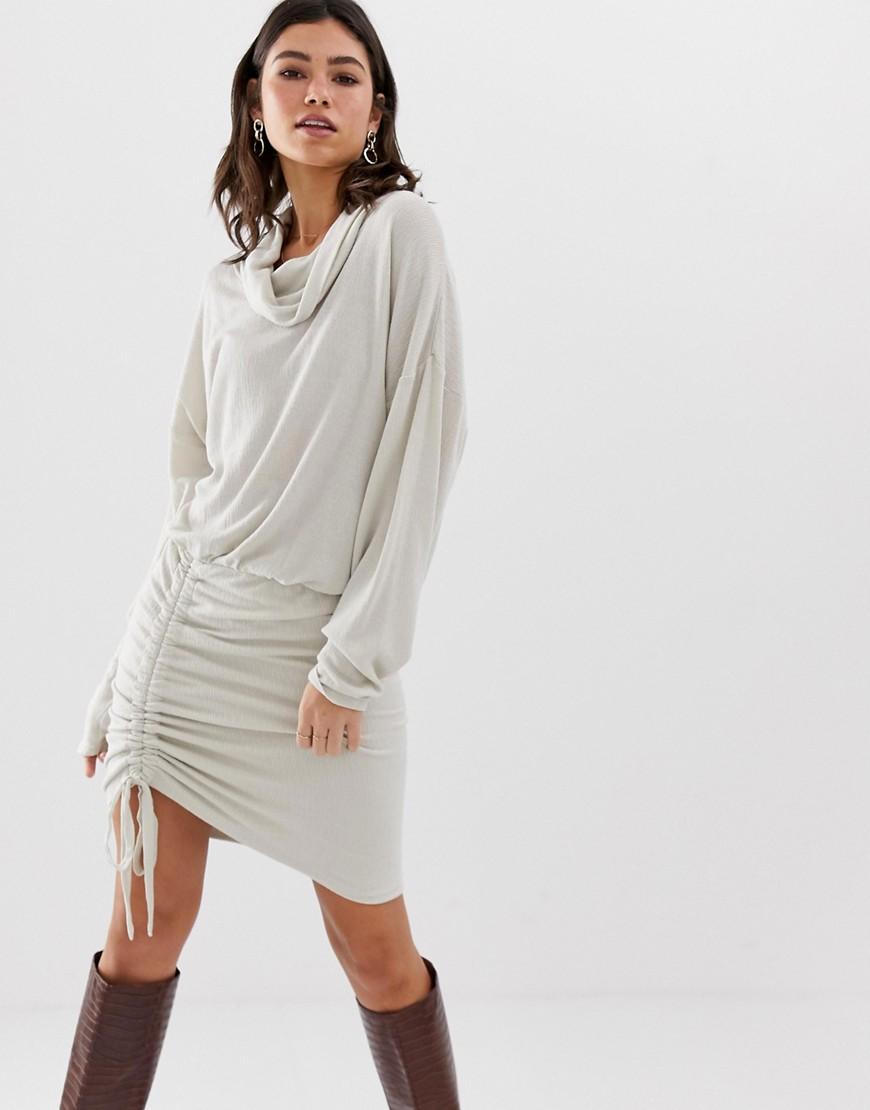 Sundown - Vestito in maglia con collo ad anello da donna di colore neutro
