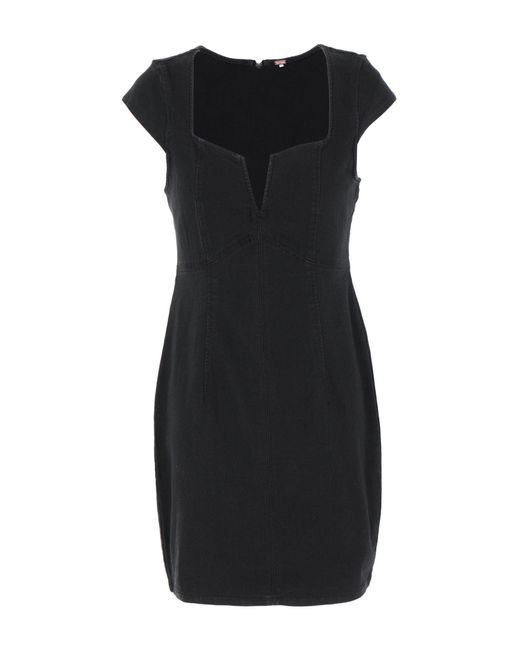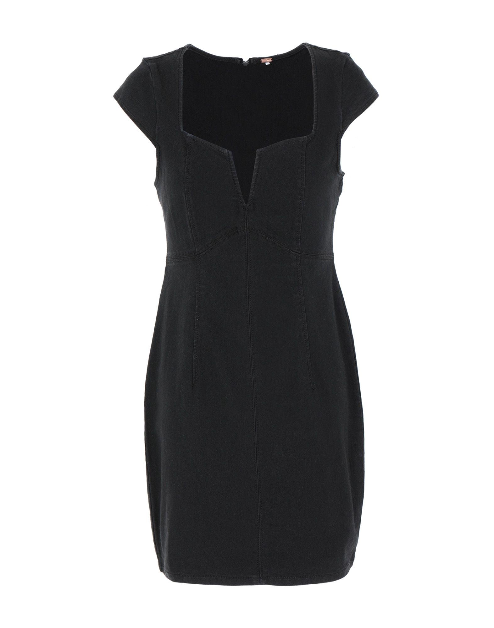 Denim, senza applicazioni, tinta unita basic, collo con scollatura quadrata, maniche corte, senza tasche, chiusura sul retro, zip, interno sfoderato, elasticizzato. 53% Cotone, 23% Rayon, 22% Poliestere, 2% Elastan. Colore: nero