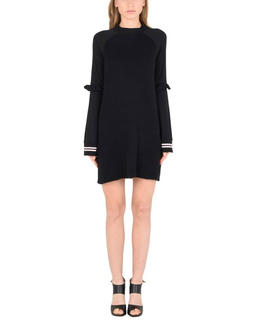 Jersey, lavorato a maglia, collo tondo, senza tasche, maniche lunghe, maglia leggera, ruches, tinta unita, vestito. 76% Cotone, 24% Acrilico, Poliestere. Colore: nero
