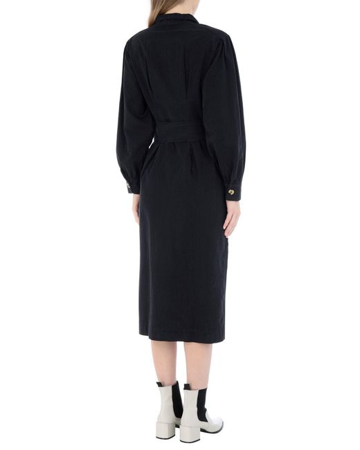 Tela, cintura, tinta unita basic, collo classico, maniche lunghe, multitasche, doppio spacco laterale, chiusura sul fronte, bottoni, interno sfoderato, polsini con bottoni, modello chemisier. 100% Cotone. Colore: nero