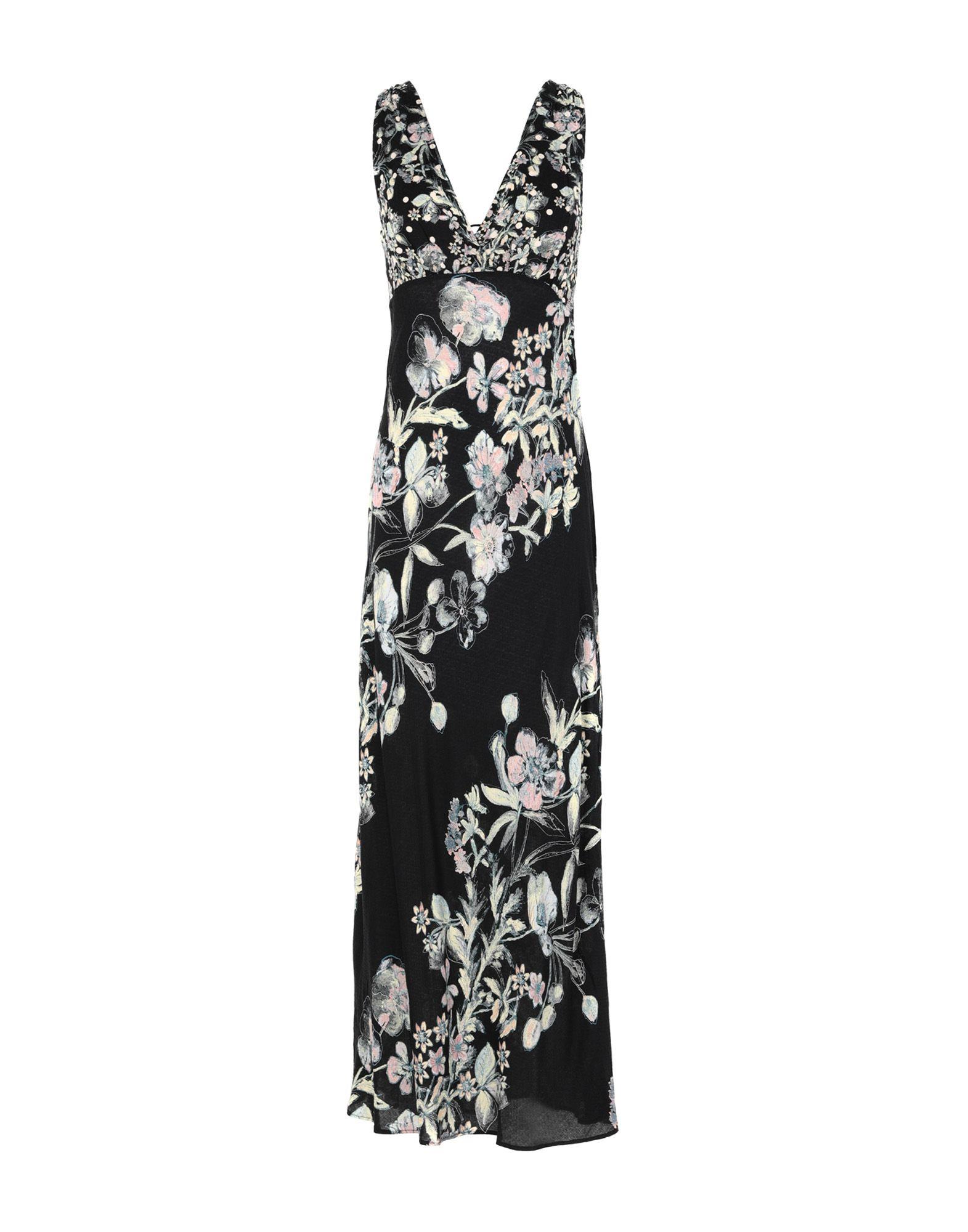 Crêpe, senza applicazioni, fantasia floreale, collo con scollatura profonda, senza maniche, senza tasche, spacco laterale, chiusura sul retro, chiusura da annodare, interno sfoderato. 100% Rayon. Colore: nero
