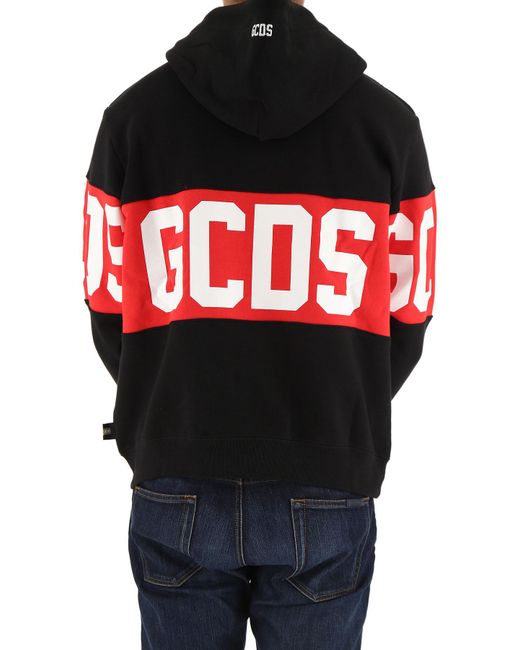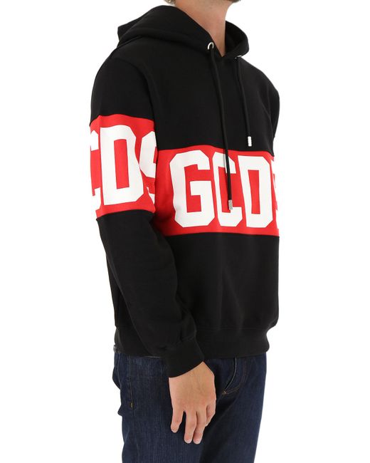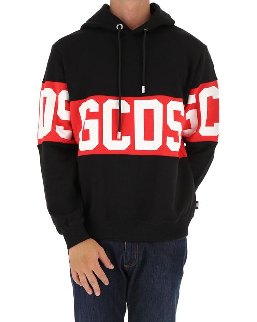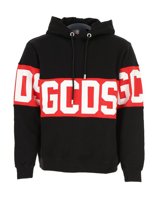 Nero. Autunno - Inverno 2019/20.Made in Italy. Adjustable Laces on Hood. GCDS Logo Print on Front. GCDS Logo Print on Sleeves. Model measures: chest 102 cm / height 188 cm / waist 93 c. Il modello veste la taglia IT M. Cotone. Abbigliamento Uomo: GCDS Felpa Uomo. Felpe. Altri Colori: Rosso. Colore: nero