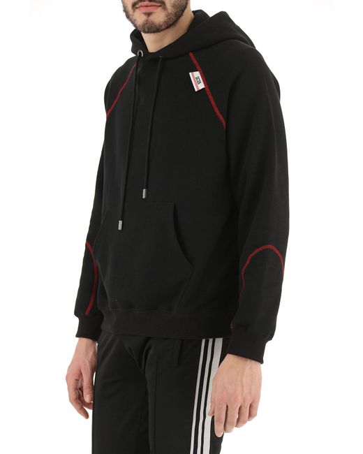 Nero. In Saldo. Primavera - Estate 2019.Made in Italy. Cappuccio. Lacci sul collo. Cuciture a contrasto. Ill modello veste la taglia IT M. Cotone. Abbigliamento Uomo: GCDS Felpa Uomo. Felpe. Altri Colori: Rosso. Colore: nero