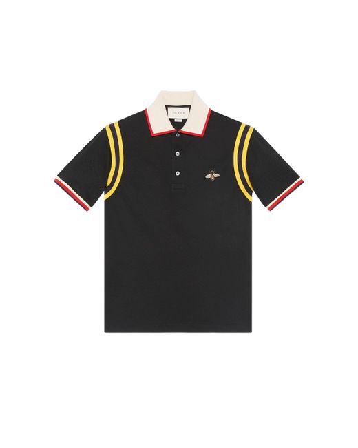 Polo con ape ricamata di colore nero in cotone elasticizzato di Gucci.